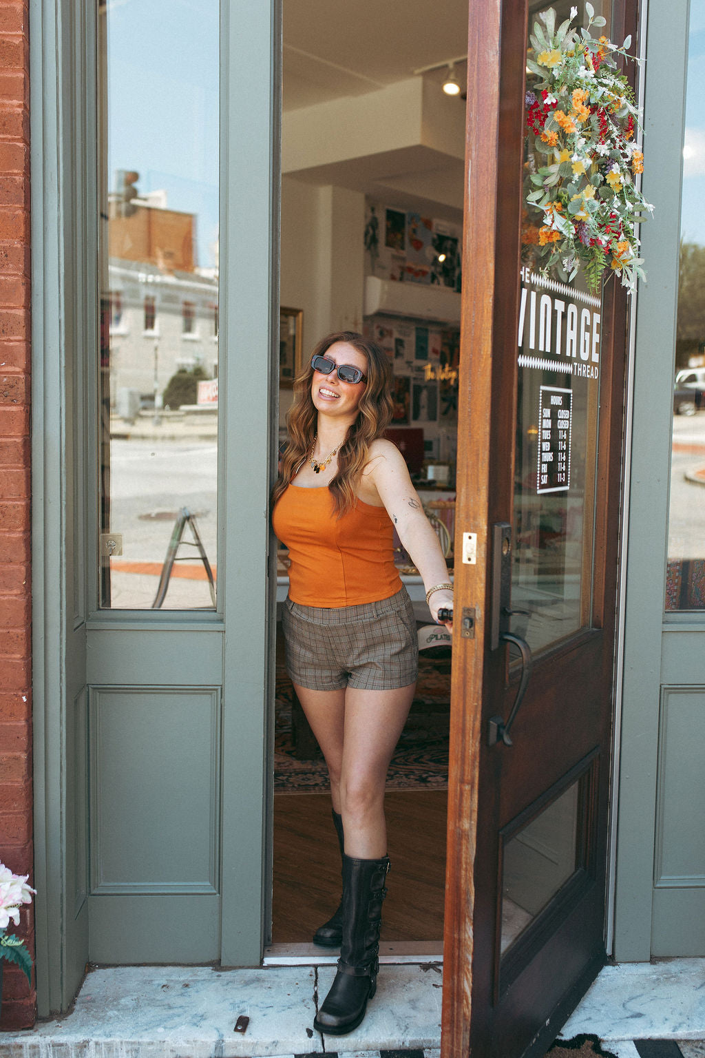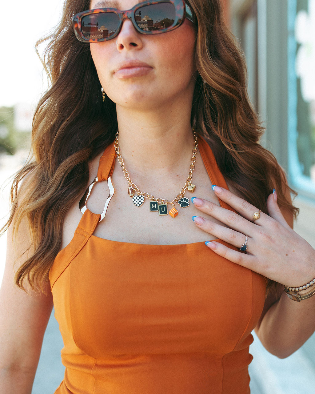 Halter with gold ring accent, lining is spandex so has lots of stretch but is super soft
