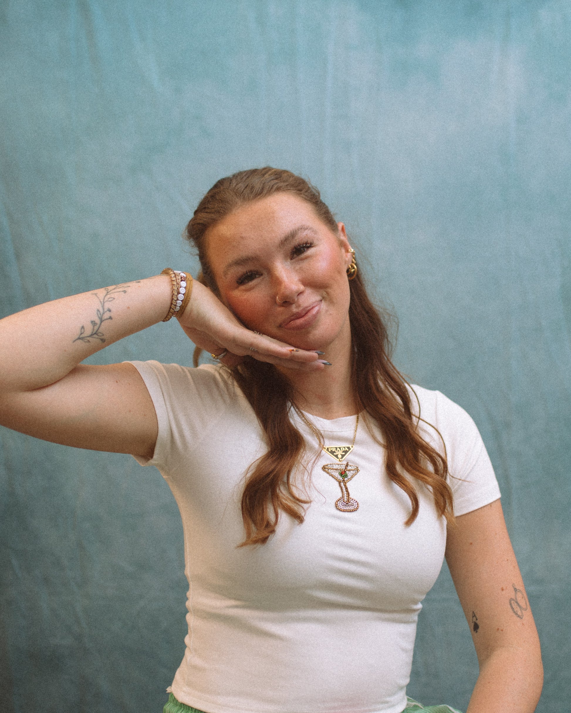 Add a splash of sparkle to your casual look with the Martini Magic Tee. Featuring playful martini bead embroidery, this short-sleeve tee brings a fun, festive vibe to your everyday style. Perfect for those who love a little charm and whimsy in their wardrobe.