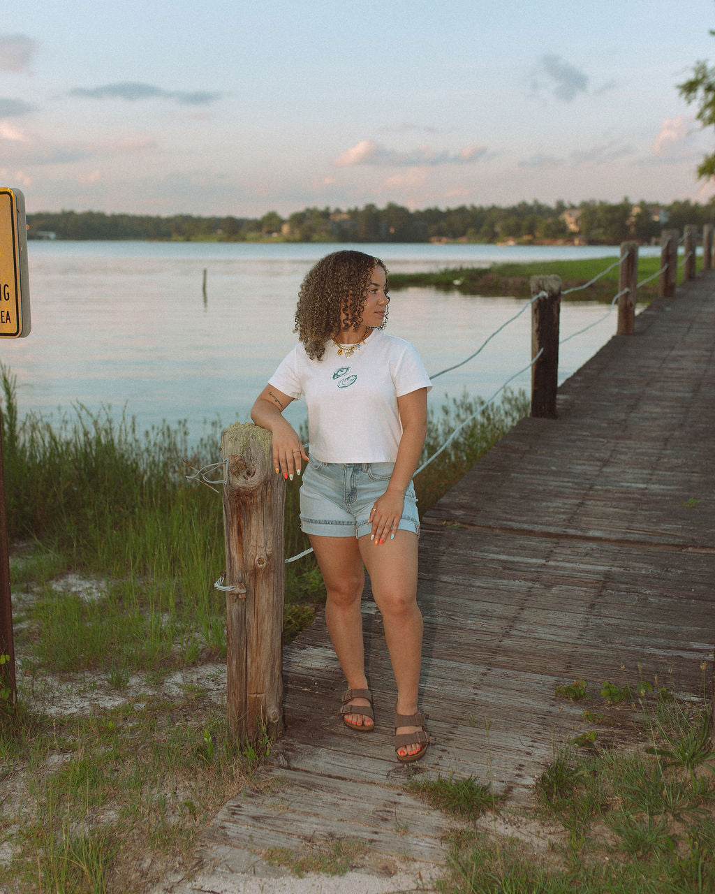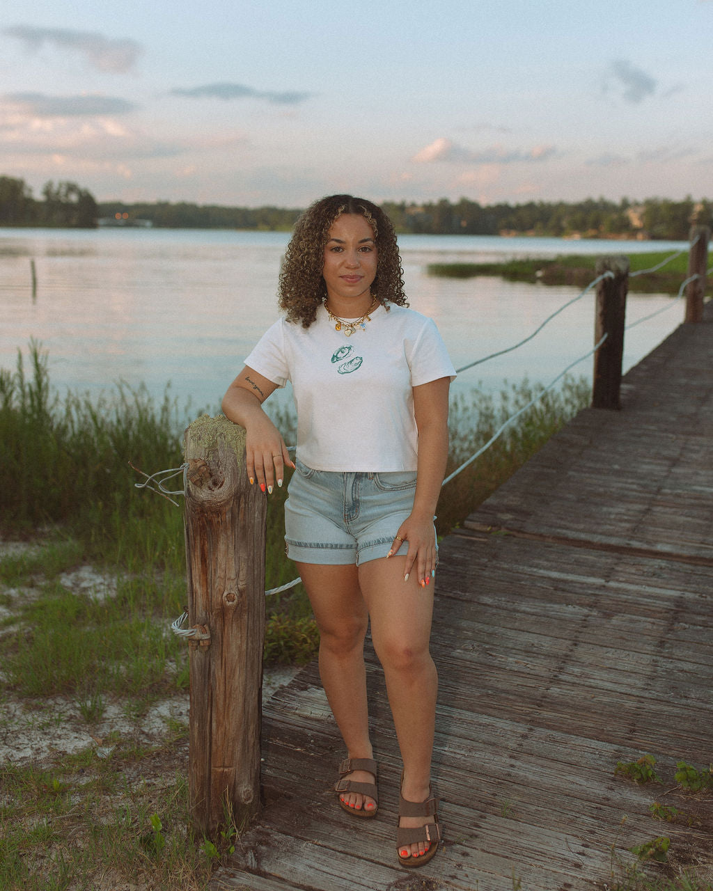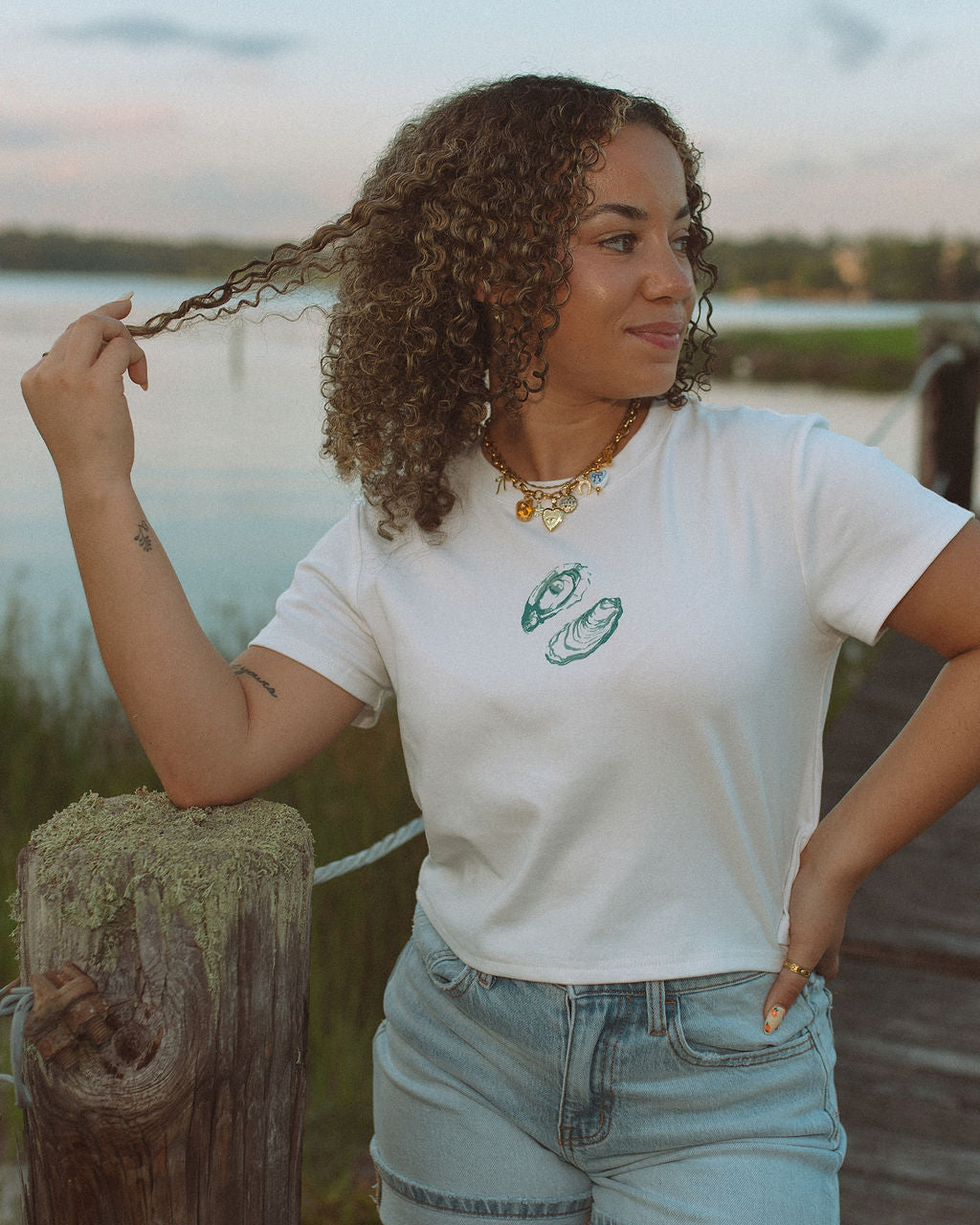 Get ready to make a splash with The Oyster Club! Our "Oyster" Graphic Tee is the perfect addition to your wardrobe. With a playful oyster design and comfortable short sleeves, this baby tee is a must-have for any casual look. Slip it on and let the good times roll!